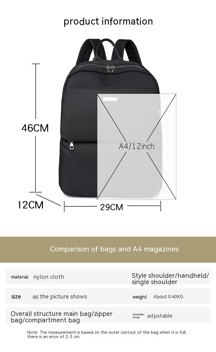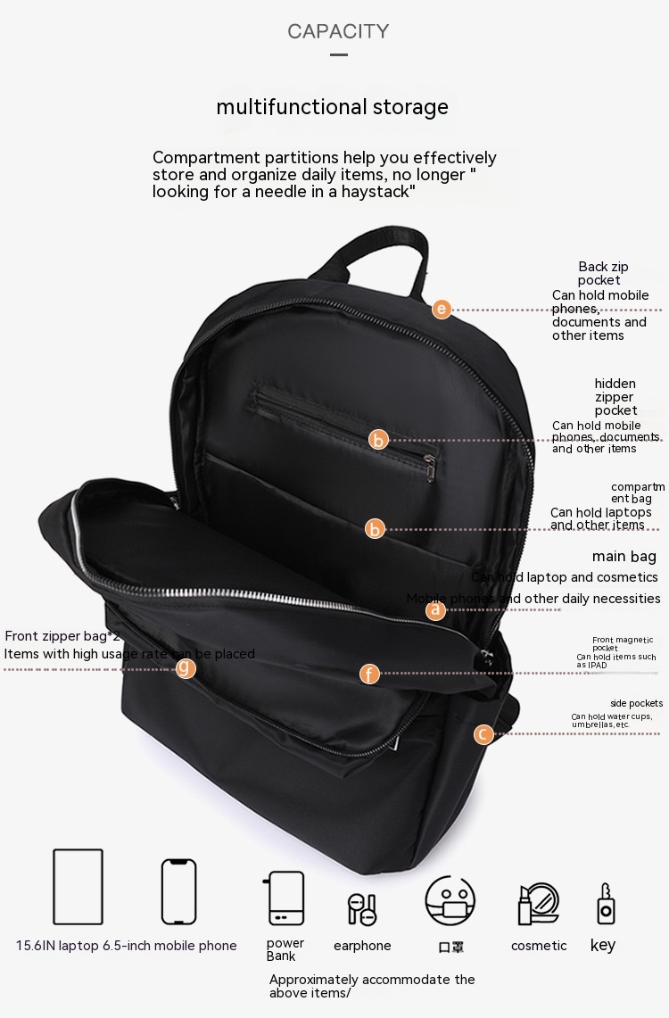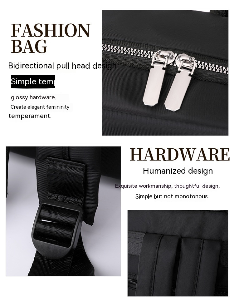Crafted from high-quality waterproof and wear-resistant nylon, it ensures that your belongings stay protected from the elements. The internal structure is thoughtfully organized with a zipper bag, mobile phone pocket, file compartment, and a dedicated computer sleeve, allowing you to keep everything in its place and easily accessible.
