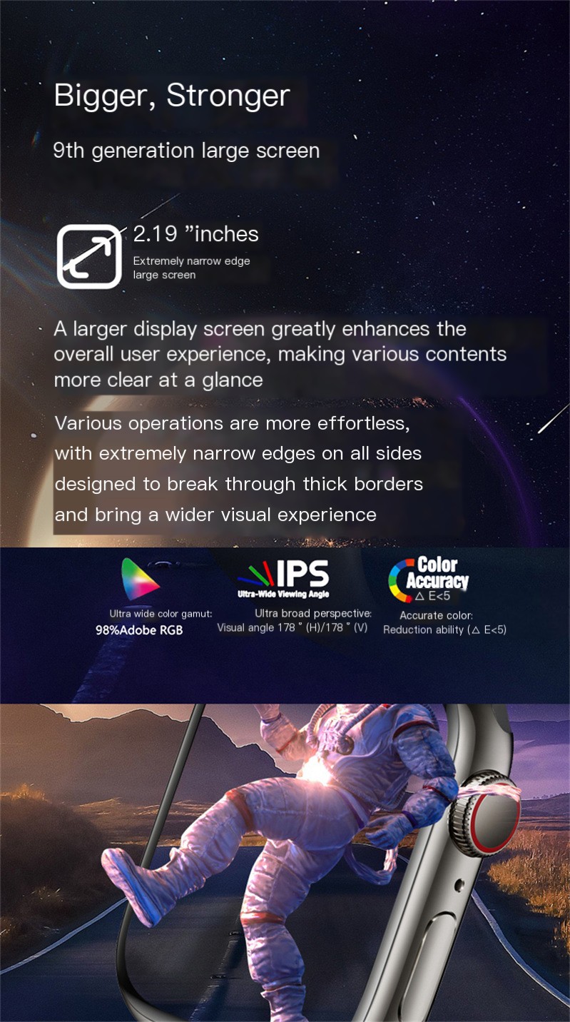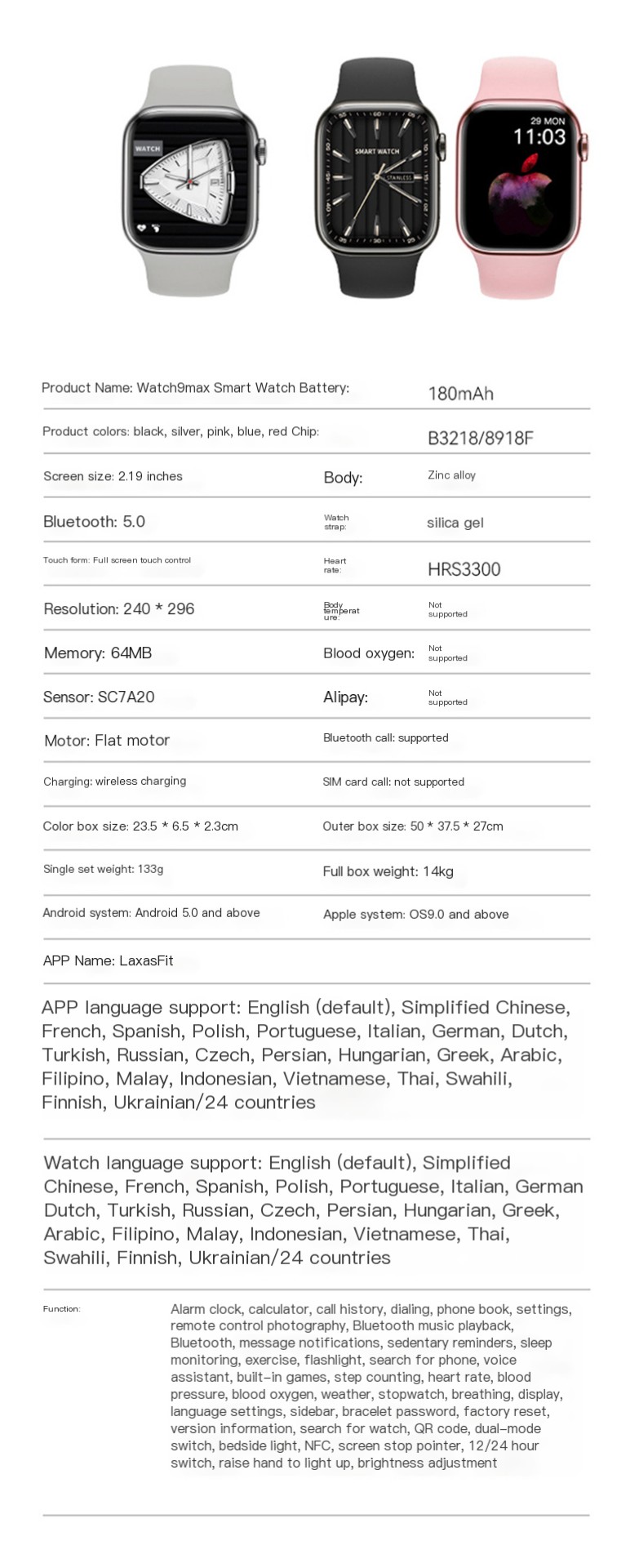 Featuring a vibrant 2.01-inch display, this smartwatch is not just a timepiece; it’s a multifunctional device. Whether you’re making NFC Bluetooth calls or monitoring your daily activities, the WATCH9 max keeps you in touch with the world around you. With a powerful 180mAh battery and a memory capacity of 256KB SRAM / 64Mb FLASH, it’s designed to keep up with your busy lifestyle.