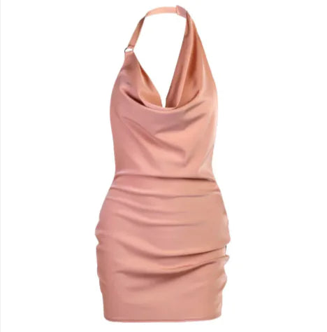 Turn heads in this sultry satin party dress featuring a V-neckline, open back, and adjustable tie-up spaghetti straps. The ruched sides and drawstring let you style it as a mini or midi length. Made of smooth polyester, it flatters with a sleek, high-waist silhouette—perfect for summer nights.