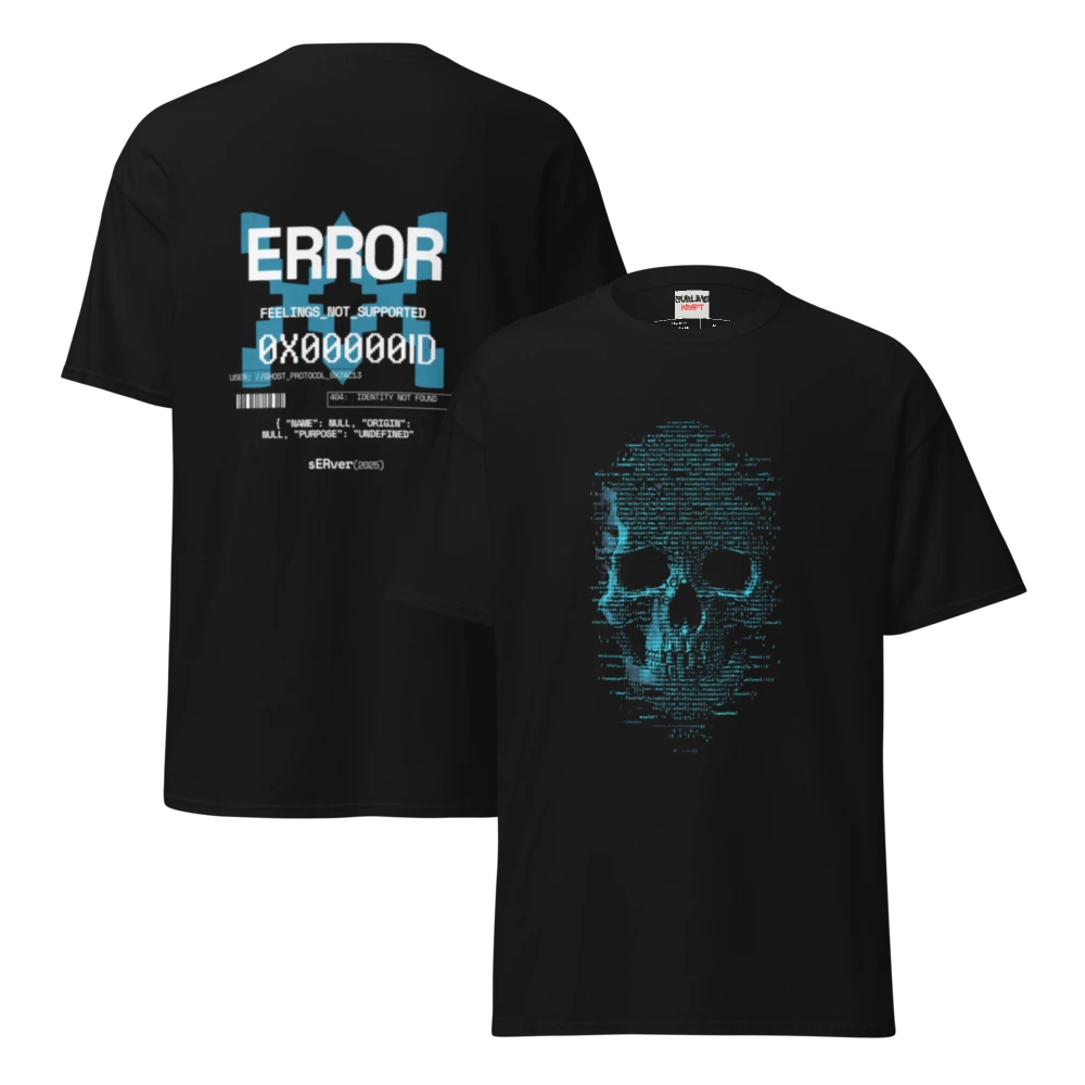 Glitch meets grit. This tee fuses dark sci-fi aesthetics with a bold system-error design — featuring a futuristic skull caught mid-malfunction. It’s rebellion coded in pixels: eerie, sleek, and unapologetically defiant. Perfect for those who thrive in chaos, live off caffeine, and question the system with style. Printed on premium fabric built for comfort and attitude, this isn’t just a shirt — it’s a visual warning that something (or someone) is about to crash the network.