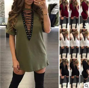 Featuring a daring deep V-neckline and trendy short sleeves, this dress is perfect for a night out at the club or a chic dinner party. The unique eyelet details add a touch of flair, making it an eye-catching choice for any occasion. With multiple color options such as classic black, elegant grey, pristine white, and bold wine red, you can express your personal style effortlessly.