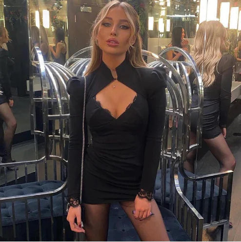 Your look is completed with intricate lace details that add a touch of glamour, ensuring you stand out in any crowd. Whether you're hitting the club or enjoying a night out with friends, this dress is your go-to choice.